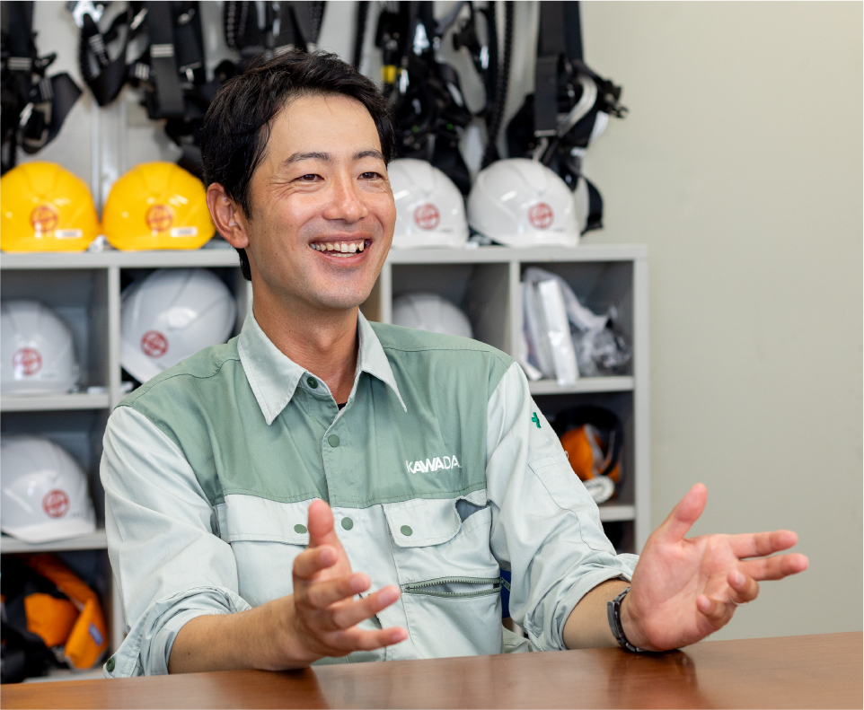 当社へ転職する前は、派遣のエンジニアとしてさまざまな土木工事現場に赴いていました。そのなかで川田工業の社員と出会い、「うちで働かないか」と声を掛けてもらったのが入社のきっかけです。川田工業に対しては、一緒に働くなかでチームワークの良さを感じていましたし、真面目にコツコツと仕事に取り組む社員たちの姿に信頼やあこがれも覚えていました。また、ちょうど結婚を考えていたタイミングだったので、当社が持つ安定した基盤や手厚い福利厚生も魅力でしたね。橋梁施工管理の経験はあまりありませんでしたが「仕事のなかで知識やスキルを身に付ければ大丈夫」というアドバイスに背中を押され、入社を決めました。