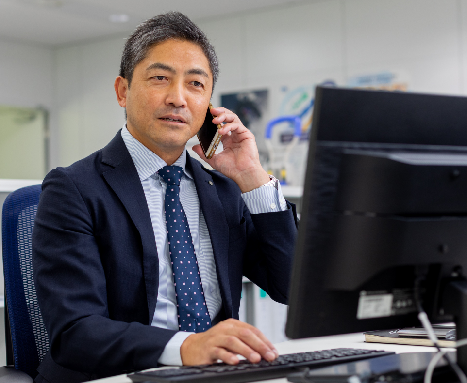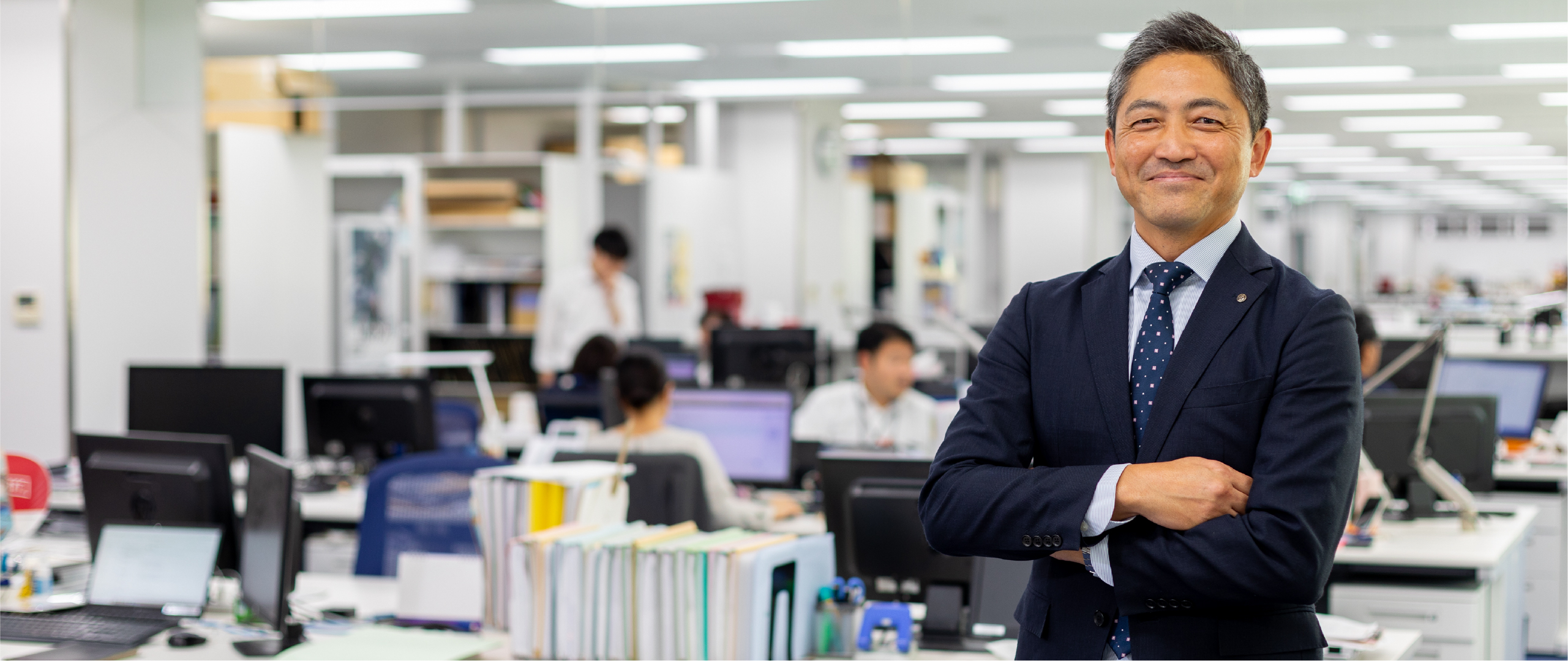 営業企画室は2023年に立ち上げられたばかりの組織。まずは、その組織が担っている役目を果たしながら、室長としてしっかり成果を出していくことが今の私の責務であり目標です。近年、全社的に若い人材が増えてきていますが、ベテランも多く在籍しており、分からないことや不安なことがあれば年齢や社歴に関係なく誰にでもフランクに相談できます。業界経験がない中途入社の皆さんでも、一からキャリアを築ける安心の環境があります。また、有休休暇が取得しやすく、それぞれの仕事のペースを尊重しながらも無駄な残業をさせるような風土は一切ありません。ワークライフバランスが良好な職場を求めている方にもぜひ当社をお勧めしたいですね。